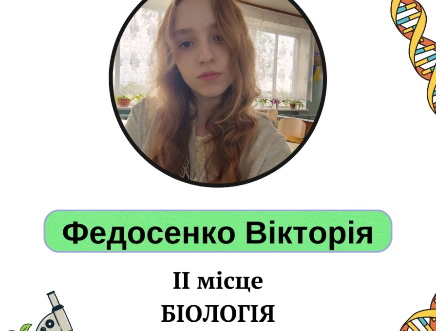 Федосенко Вікторію, ученицю 10-Б класу, за зайняте ІІ місце у І етапі Всеукраїнської учнівської олімпіади з БІОЛОГІЇ!