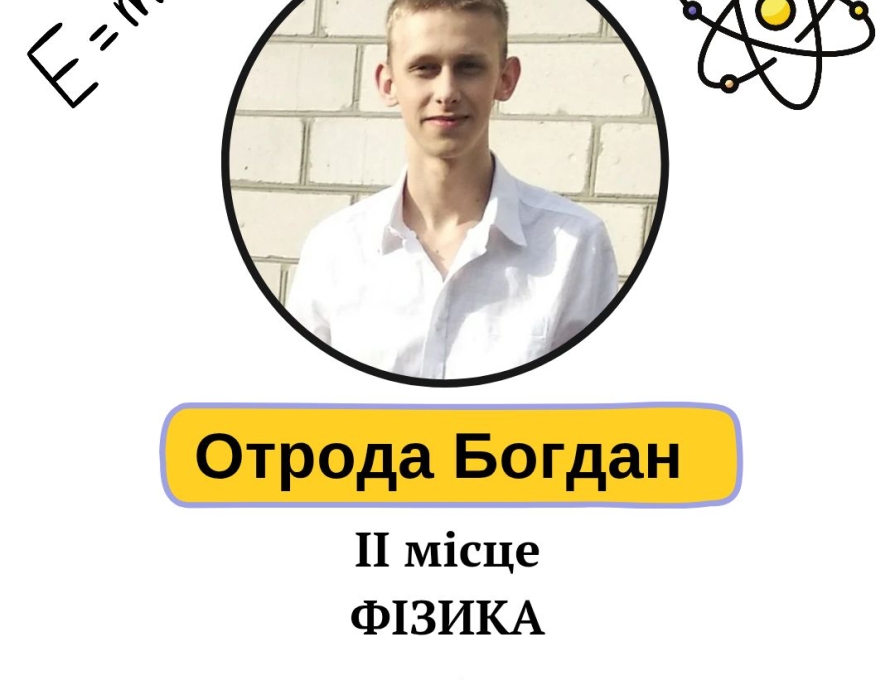 Отроду Богдана, учня 11 класу, за зайняте ІІ місце у І етапі Всеукраїнської учнівської олімпіади з ФІЗИКИ! Вчитель - Чубинська Надія Василівна. Пишаємося нашими учнями і їх вчителями! Бажаємо успіхів, натхнення та нових перемог!